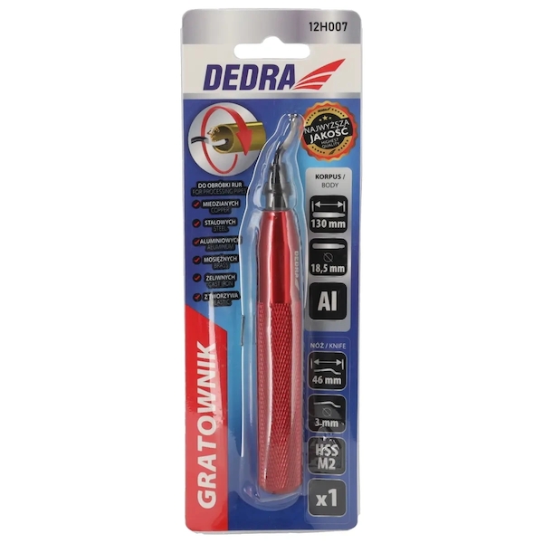 Odhrotovač a škrabka na třísky DEDRA 12H007 je nástroj určený pro zpracování trubek po řezání.