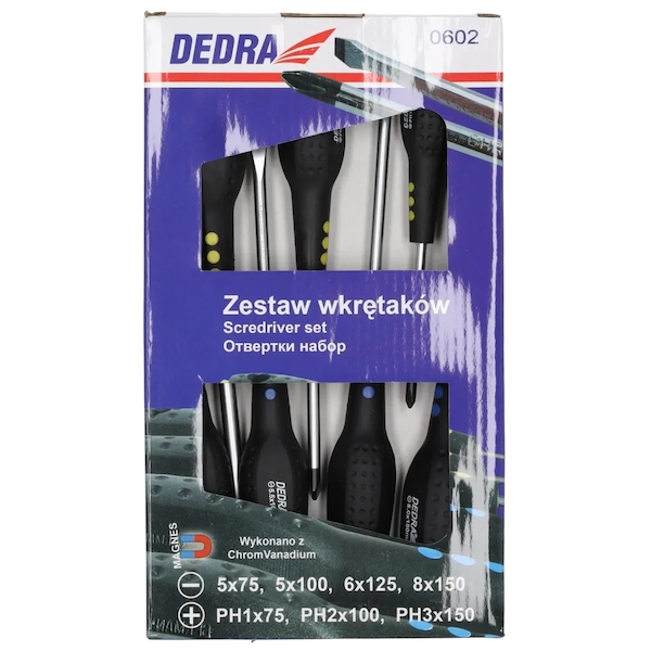 Chtěl/a bych se zeptat na bližší informace o produktu DEDRA 0602 Sada šroubováků CrV, rukojeť gumová, 7 ks.