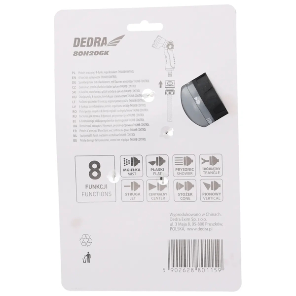 Chtěl/a bych se zeptat na bližší informace o produktu DEDRA 80N206K Zavlažovací pistole 8 funkcí ovládání palcem THUMB CONTROL.