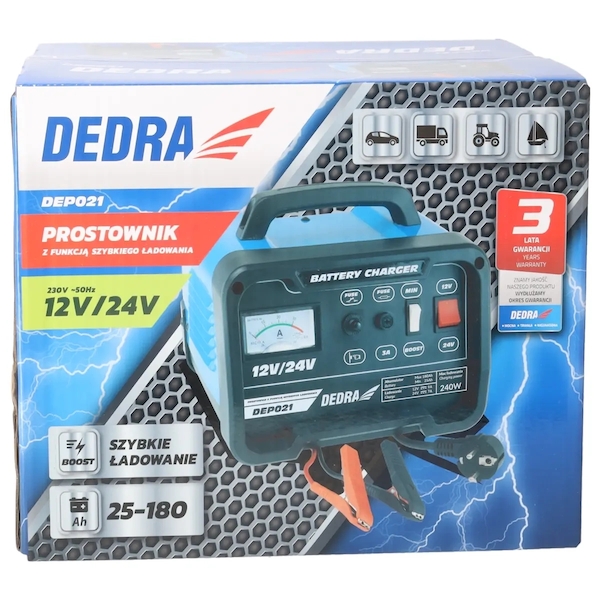 DEDRA DEP021 Nabíječka s funkcí rychlého nabíjení 12/24V 25-180Ah