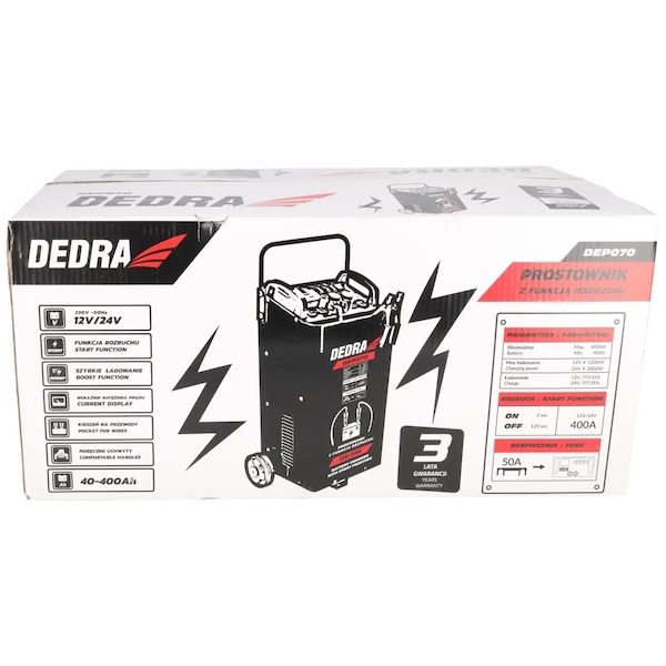 DEDRA DEP070 Nabíječka s funkcí pomocného startu 12/24V 40-400Ah