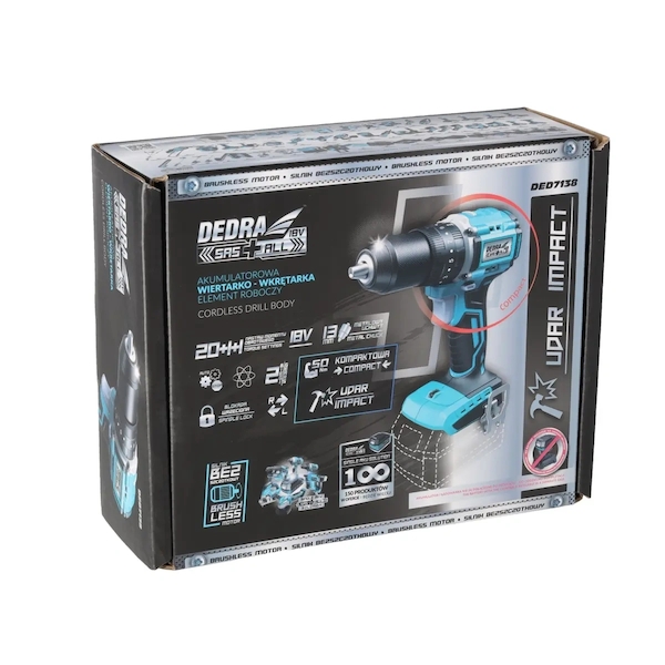 Akumulátorová vrtačka DEDRA SAS+ALL DED7138, bezkartáčový šroubovák s příklepem 18 V: